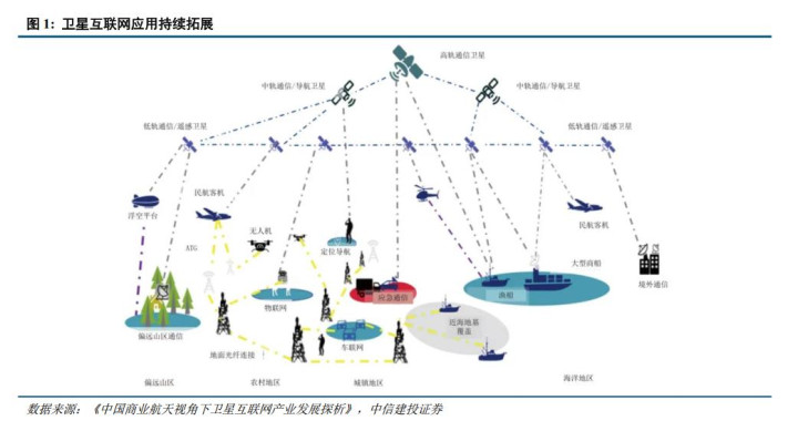 卫星大规模部署的背景下,下游应用场景的多元化与深度融合拉动了卫星通信市场新需求。卫星通信的应用场景由传统的广播电视、海事通信等领域,向国民经济和社会生活的各层面渗透。卫星互联网方面,全球SpaceX下属的Starlink已实现超150个国家和地区市场覆盖,付费用户数超过900万人,同时为个人用户和政府、军队用户提供多样化的通信、数据处理等服务。物联网领域,卫星通信能够覆盖海洋、沙漠、空中等地面网络覆盖盲区,对于远洋航运、生态监测与治理、航空通信等场景提供高效低延时的实时数据交互通道。应急与国防领域,卫星通信在自然灾害导致地面通信中断时可以及时提供信息传输能力,为救灾争取宝贵时间;卫星通信的强抗干扰能力也在国防领域保障安全。除此之外,更大规模的卫星星座部署带来了更广泛的应用场景,包括跨境通信、低空通信、科研探测、车联网等。展望未来,太空数据中心随着发射成本降低将具备经济可行性,对于星间卫星通信带来增量需求。