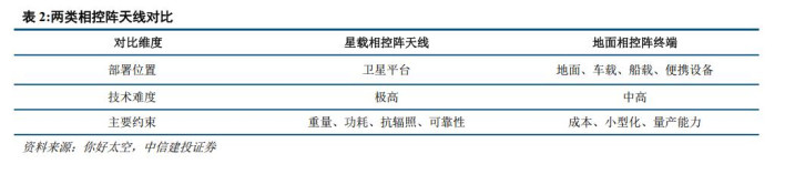 其次是天线形态的升级,由传统机械天线升级为相控阵天线。传统天线受制于形态,为了实现不同角度的通信,不得不靠机械转动以对准卫星。相比之下,相控阵天线阵列并行排列了数千个甚至更多的小天线单元,利用各个子天线之间的相位偏移来实现电子方式控制波束。根据部署位置和工程约束的不同,相控阵天线可分为星载相控阵天线与地面相控阵终端设备,两者共同解决了低轨卫星通信的痛点。相控阵天线具备高灵活度、高扫描范围、高可靠性等特点,更好适配新型低轨通信卫星。相控阵天线通过电子扫描和多波束能力,实现了(1)对低轨卫星的持续稳定跟踪:无机械部件磨损提高可靠性的同时,分布式的天线单元设计也让单个组件失效对系统整体稳定性影响大幅降低。(2)多星同时通信与快速切换:低轨卫星的轨道周期约90-120分钟,地面与卫星的不间断持续通信必须具备快速跟踪与切换能力,而相控阵天线覆盖范围更广,且支持多波束同时工作,一副天线同时追踪多颗卫星,实现多星协同通信与毫秒级切换。(3)对不同区域、不同业务的动态覆盖:相控阵天线可以通过调整波束方向和形状,根据实时用户分布,动态调整波束的覆盖区域,提升带宽利用率以及区域服务能力。